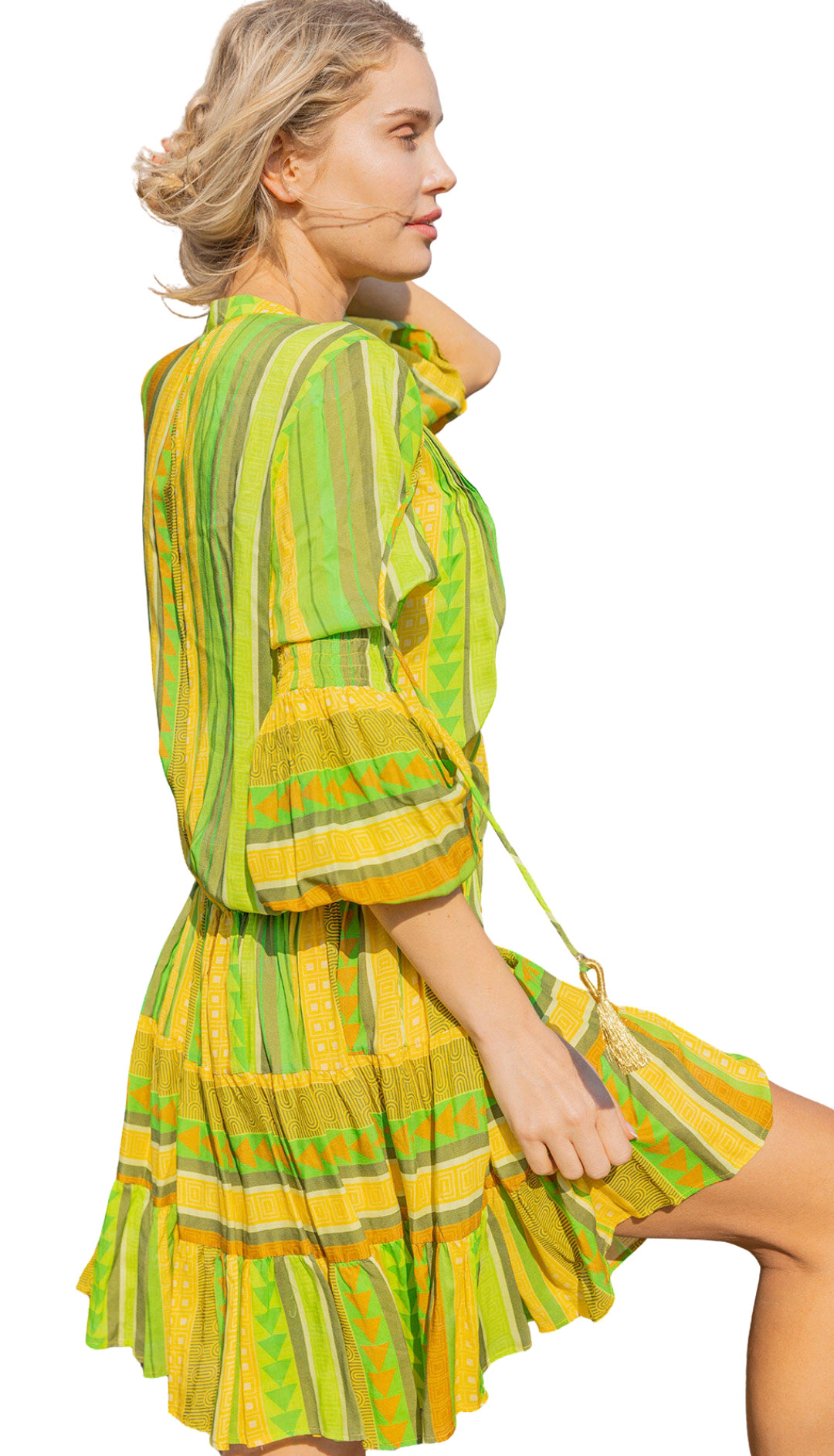 Mittellanges Tunikakleid bedruckt.